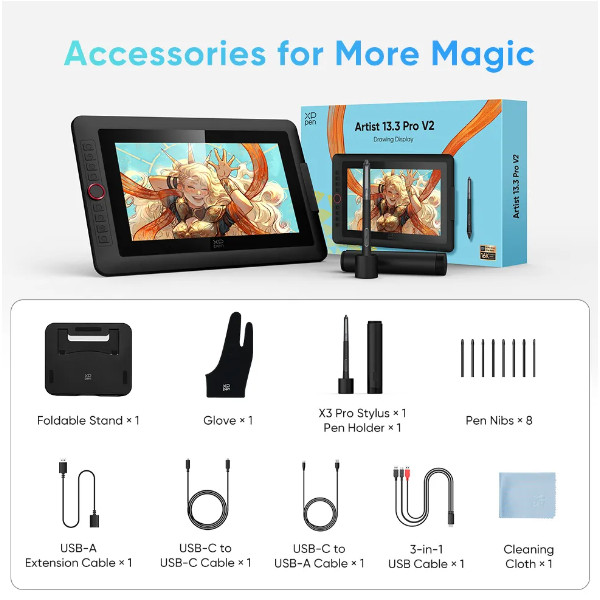 XP-PEN Grafikus kijelző - Artist 13.3 PRO V2 (13", IPS, 16:9, 1920x1080, 5080 LPI, PS 16k, 200 RPS, 9 gomb) fekete