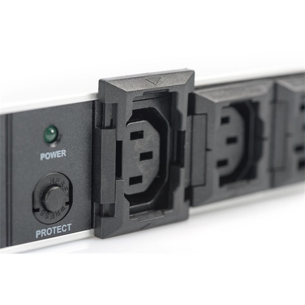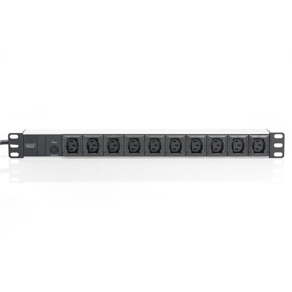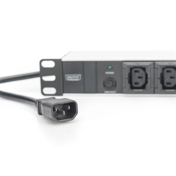 DIGITUS 1U rack alumínium 10 C14 dugaljas túlfeszültség védett hálózati elosztó