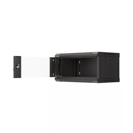 19" fali rack szekrény 4U/540X350 üvegajtó, lapraszerelt, fekete