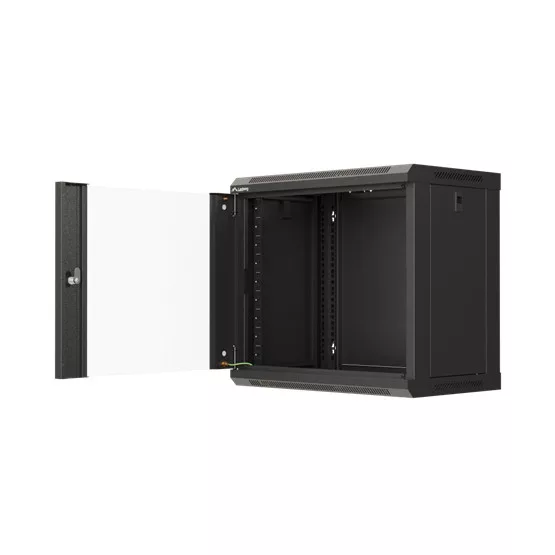 19" fali rack szekrény 9U/540X350 üvegajtó, lapraszerelt, fekete