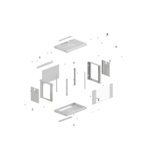19" fali rack szekrény 9U/540X350 üvegajtó, lapraszerelt, szürke