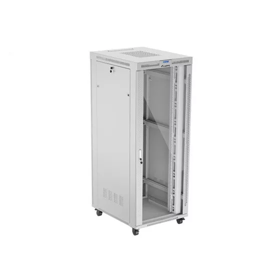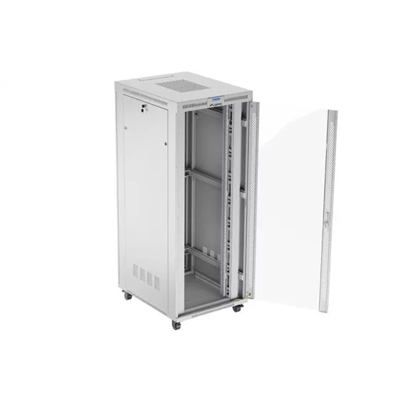 19" szabadon álló rack szekrény 42U/800X1000 üvegajtó, lapraszerelt, LCD kijelző, szürke V2