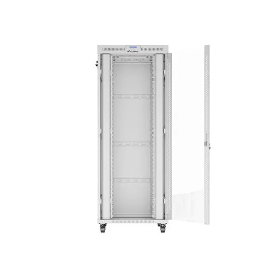 Lanberg 19" szabadon álló rack szekrény 42U/800X1000 üvegajtó, lapraszerelt, LCD kijelző, szürke V2