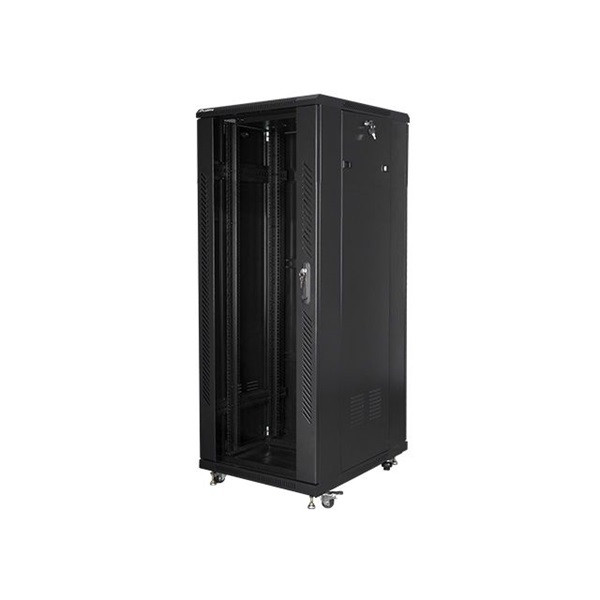 Lanberg FF01-6832-12B 19" 32U SZÉL:600mm MÉLY:800mm MAG:1603mm lapraszerelt üvegajtós fekete rack szekrény