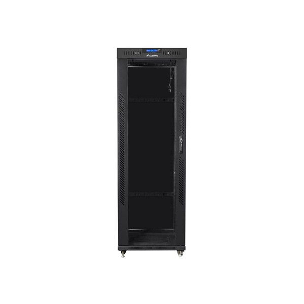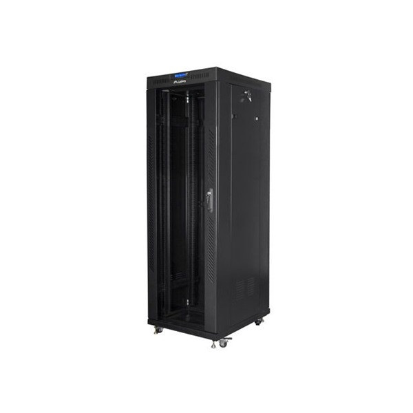 Lanberg FF01-6837-12BL 19" 37U SZÉL:600mm MÉLY:800mm MAG:1876mm lapraszerelt LCD üvegajtós fekete rack szekrény