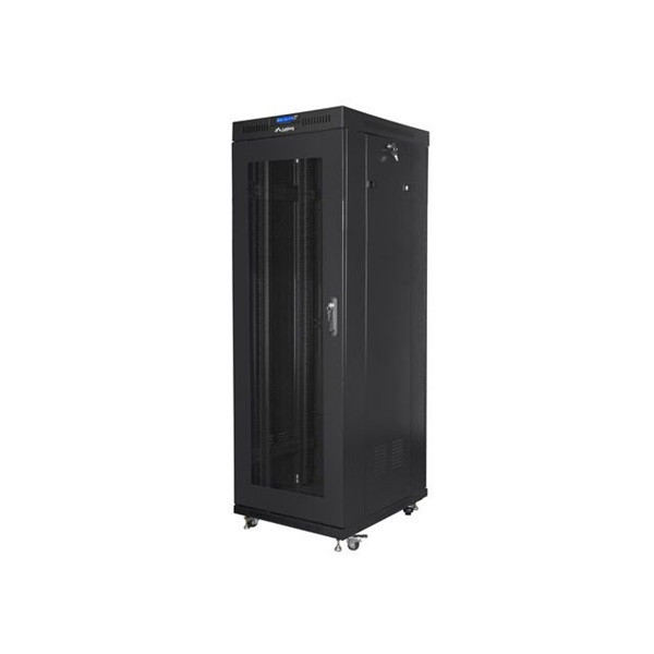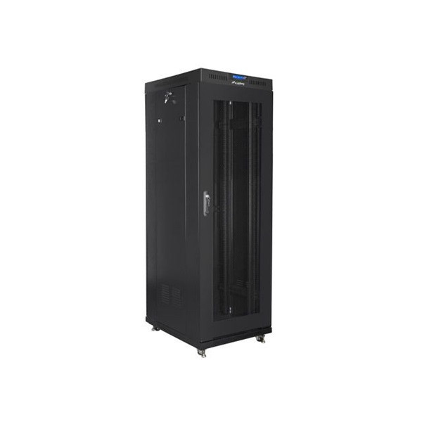 Lanberg FF01-6837-23BL 19" 37U SZÉL:600mm MÉLY:800mm MAG:1876mm lapraszerelt LCD hálós fémajtós fekete rack szekrény