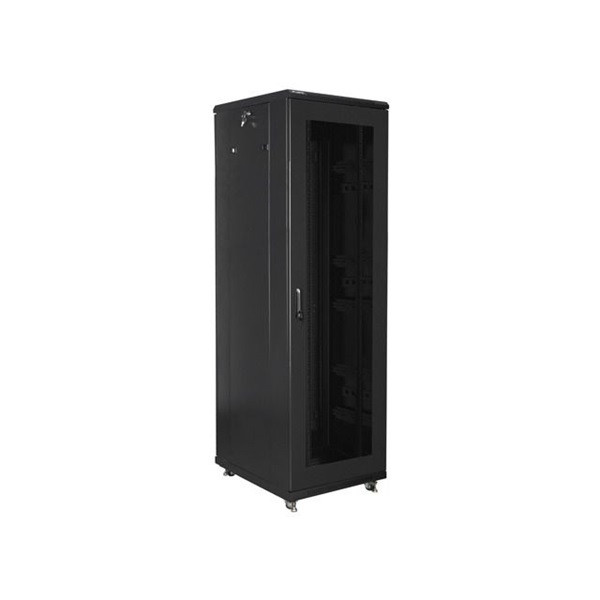 Lanberg FF01-6842-23B 19" 42U SZÉL:600mm MÉLY:800mm MAG:2047mm lapraszerelt LCD hálós fémajtós fekete rack szekrény