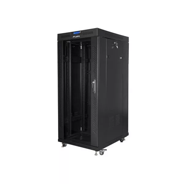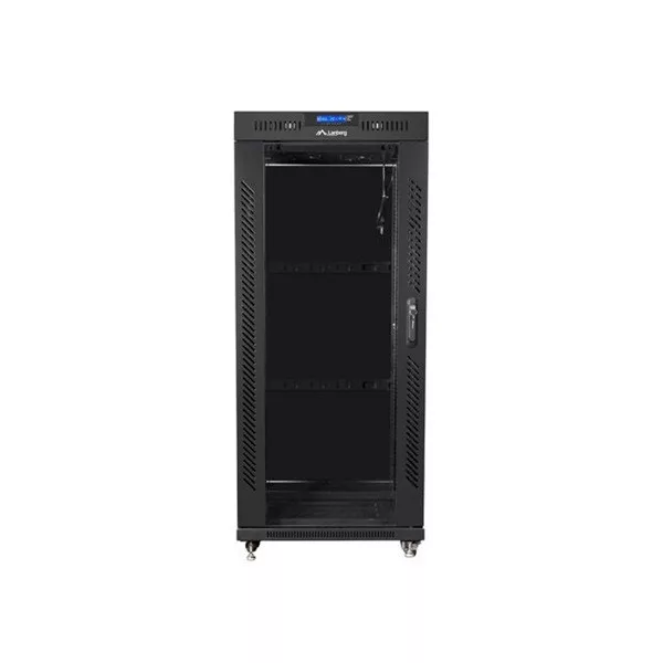 Lanberg FF01-8027-12BL 19" 27U SZÉL:800mm MÉLY:1000mm MAG:1431mm lapraszerelt LCD üvegajtós fekete rack szekrény
