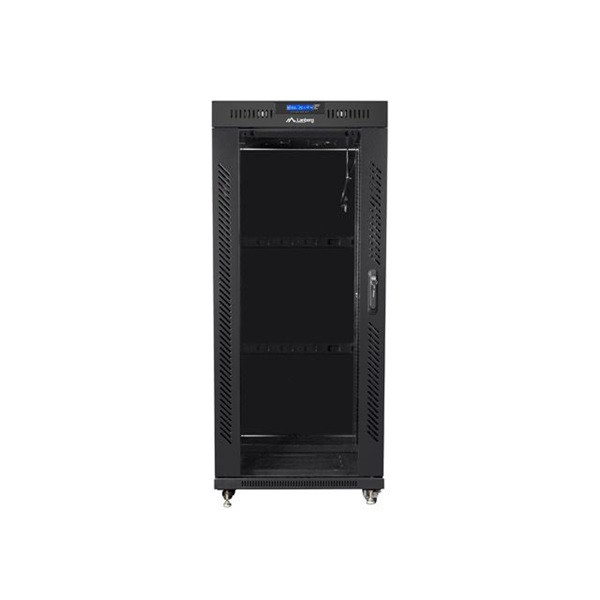 Lanberg FF01-8037-12BL 19" 37U SZÉL:800mm MÉLY:1000mm MAG:1883mm lapraszerelt LCD üvegajtós fekete rack szekrény