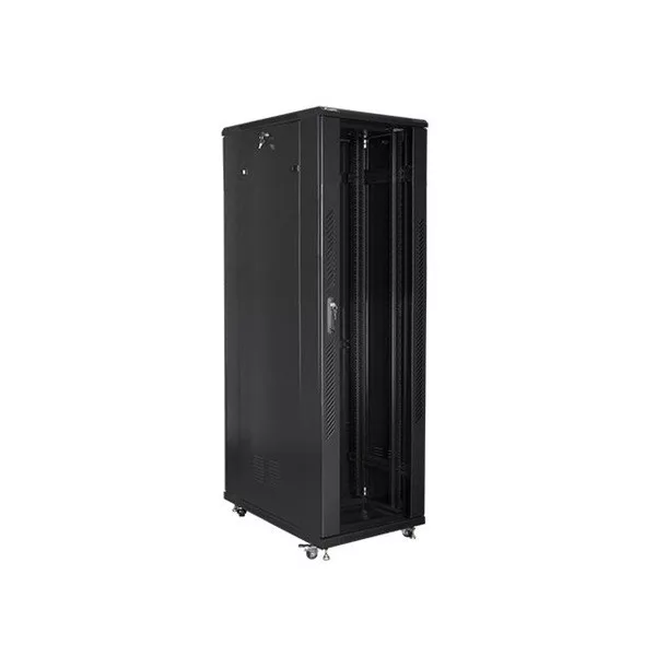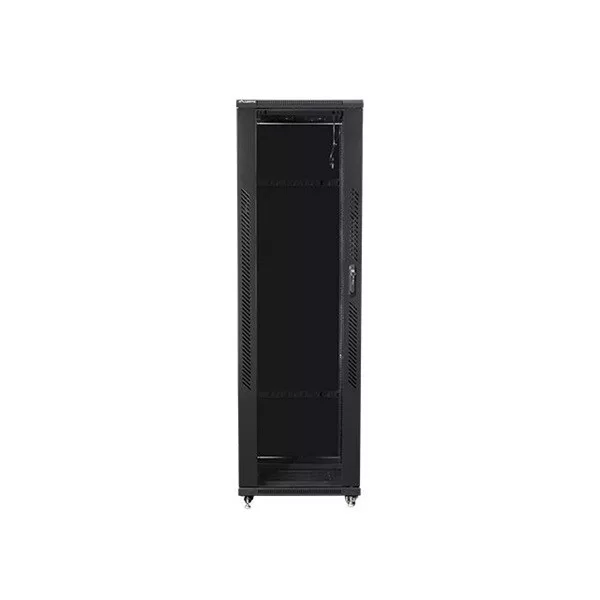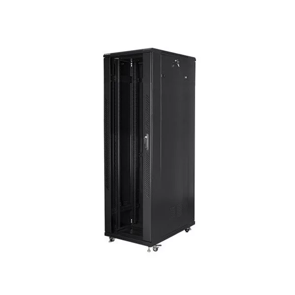 Lanberg FF01-8042-12B 19" 42U SZÉL:800mm MÉLY:1000mm MAG:2047mm lapraszerelt üvegajtós fekete rack szekrény