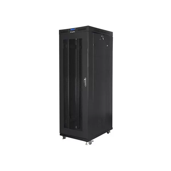 Lanberg FF01-8042-23BL 19" 42U SZÉL:800mm MÉLY:1000mm MAG:2097mm lapraszerelt LCD hálós fémajtós fekete rack szekrény