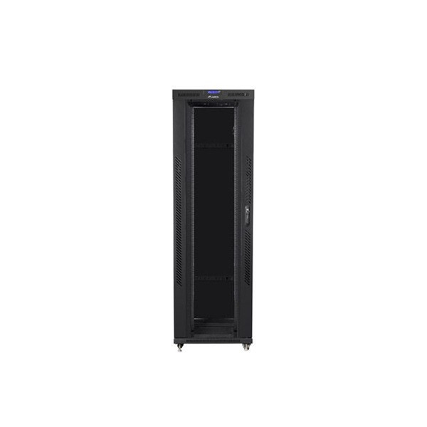 Lanberg FF01-8242-12BL 19" 42U SZÉL:800mm MÉLY:1200mm MAG:2097mm lapraszerelt LCD üvegajtós fekete rack szekrény