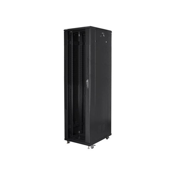 Lanberg FF01-8837-12B 19" 37U SZÉL:800mm MÉLY:800mm MAG:1826mm lapraszerelt üvegajtós fekete rack szekrény