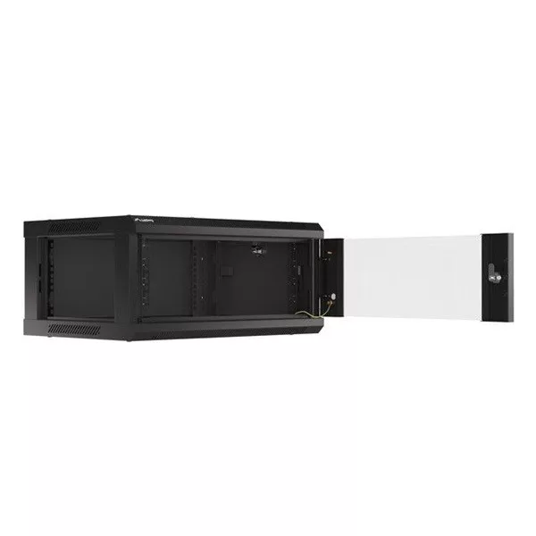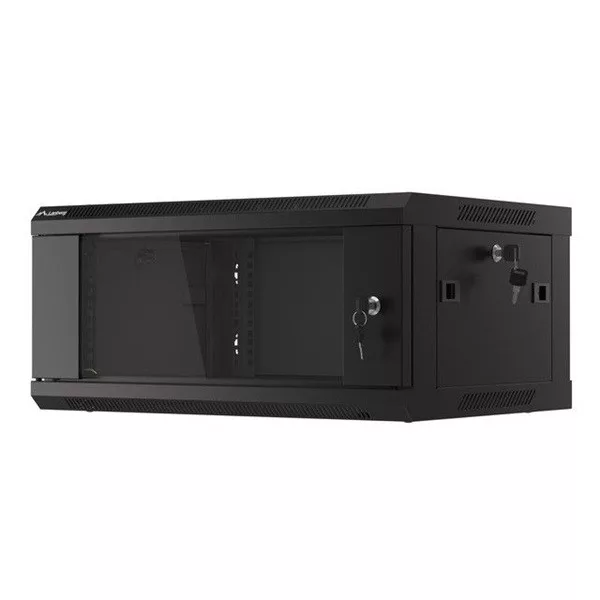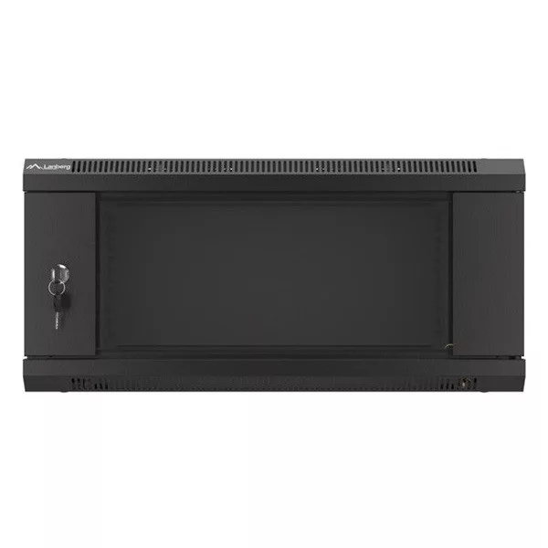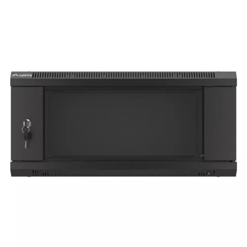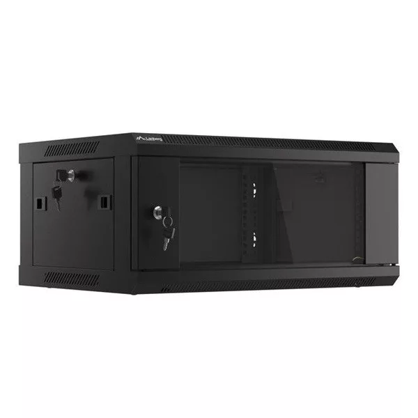 Lanberg WF01-6404-10B 19" 4U SZÉL:600mm MÉLY:450mm MAG:290mm lapraszerelt üvegajtós fekete fali rack szekrény