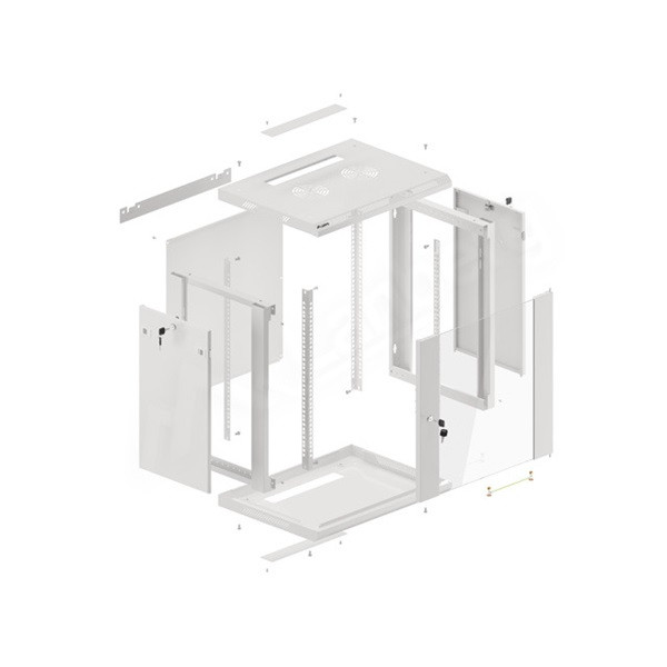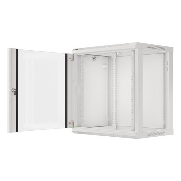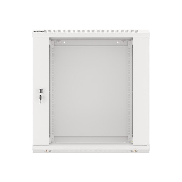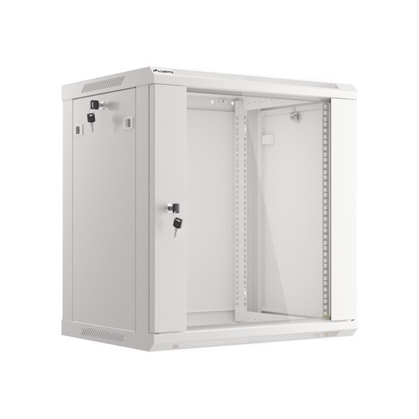 Lanberg WF01-6412-10S 19" 12U SZÉL:600mm MÉLY:450mm MAG:645mm lapraszerelt üvegajtós szürke fali rack szekrény