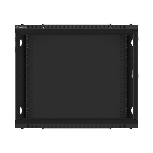 Lanberg WF01-6609-00B 19" 9U SZÉL:600mm MÉLY:600mm MAG:512mm lapraszerelt fémajtós fekete fali rack szekrény