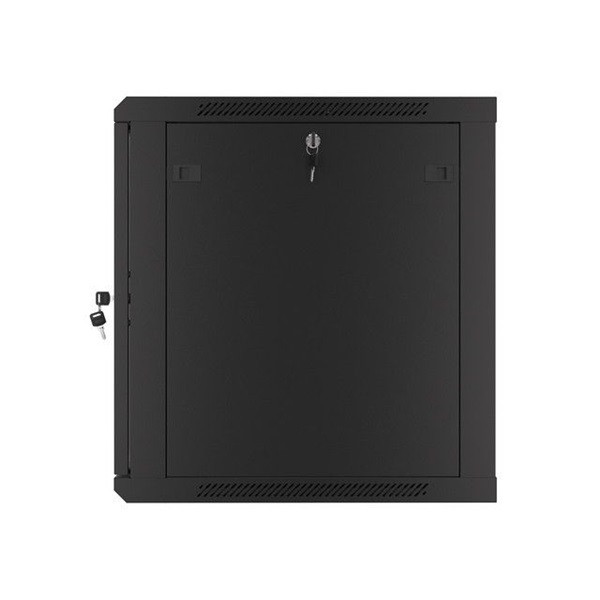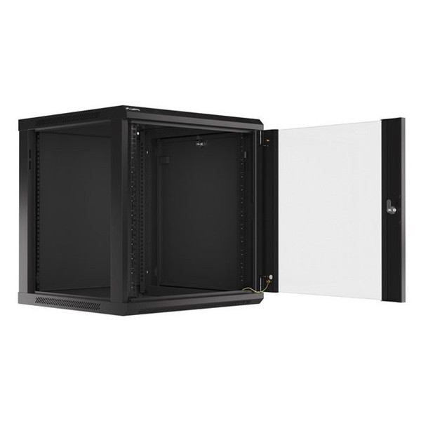 Lanberg WF01-6612-10B 19" 12U SZÉL:600mm MÉLY:600mm MAG:640mm lapraszerelt üvegajtós fekete fali rack szekrény