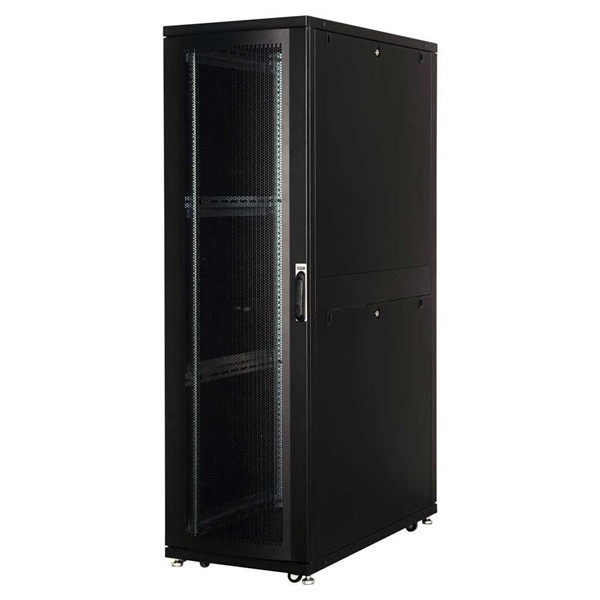 ADATOKSzélesség: 600Mélység: 1000Magassság: 42UElső ajtó: 63%-ban perforáltHátsó ajtó: Duplán nyíló 63%-ban perforáltOldalpanelek: Szegmentáltan levehető lemezSzín: RAL9005 feketeTerhelhetőség : 1 000 KgKét pár számozott raszter-sínSzintezőlábak és Görgőkkel
