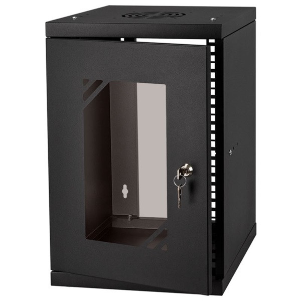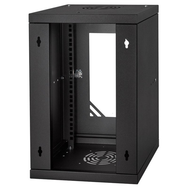 Stalflex RC10-9U-300GB 10" 9U 300 mm mély lapraszerelt fekete üveg ajtós fali rack szekrény