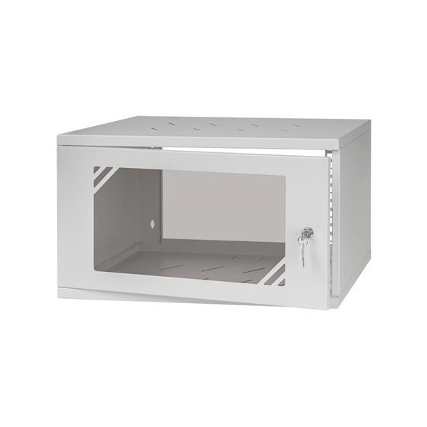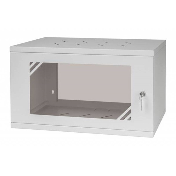Stalflex RC19-6U-350GG 19" 6U 350 mm mély lapraszerelt szürke üveg ajtós fali rack szekrény