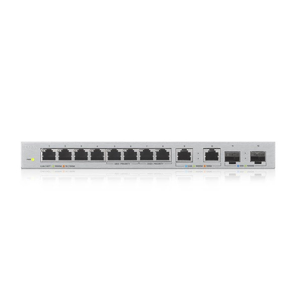 Zyxel XGS1010-12 v2 8xGbE LAN 2x2.5GbE Multi-Gig LAN 2xSFP+ port nem menedzselhető switch