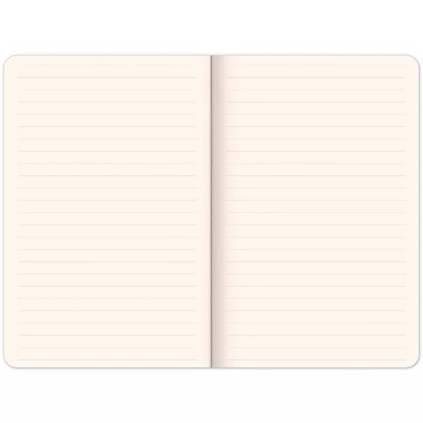 Keménytáblás vonalas notesz leszorító gumival, lekerekített sarokkal. 172 krémszínű belső oldal jelzőszalaggal és egy belső zsebbel, minden apró tárgyhoz, névjegykártyához, nyugtához. Méret: 13x21 cm.