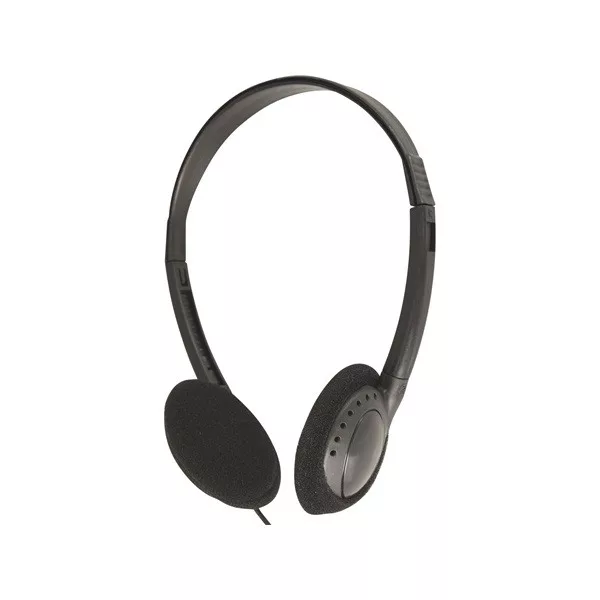 Standard music headphone with foldable earcups. Suited for airlines, trains, busses, hospitals, cinemas etc. Bulk packed, min. order 100 pcs.