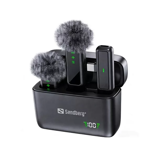 A Sandberg Streamer USB-C Wireless Mic x2 egy kompakt vezeték nélküli mikrofon szett, amely lehetővé teszi, hogy másodpercek alatt tiszta hangot rögzíts. Csak csatlakoztasd a USB-C vevőt az okostelefonodhoz, tabletedhez vagy számítógépedhez, és már készen is állsz—nincs szükség kábelekre, alkalmazásokra vagy bonyolult beállításokra. A szett két vezeték nélküli mikrofont tartalmaz, így használhatod egyedül streaminghez és videókhoz, vagy mindkettőt egyszerre interjúkhoz. A mikrofonok könnyen feltölthetők a mellékelt töltőtokban, így a szett tökéletes útközbeni használatra. Szélfogók is tartoznak hozzá, hogy csökkentsék a szélzajt kültéri felvételek során. Ideális tartalomkészítéshez, interjúkhoz, közösségi médiához és gyors felvételekhez, szilárd és tiszta hangzással.
