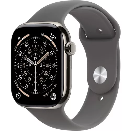 Apple Watch S11 Cellular 42mm Natural Titanium Case with Stone Grey Sport Band S/M