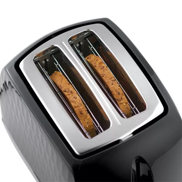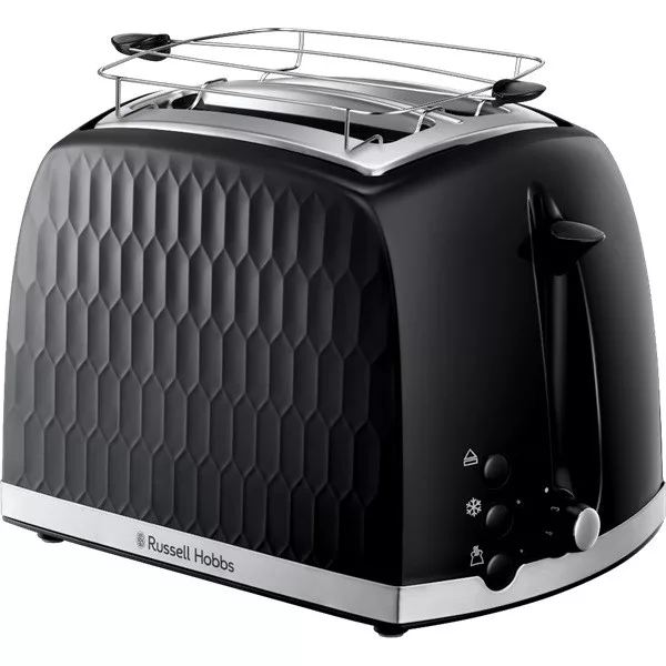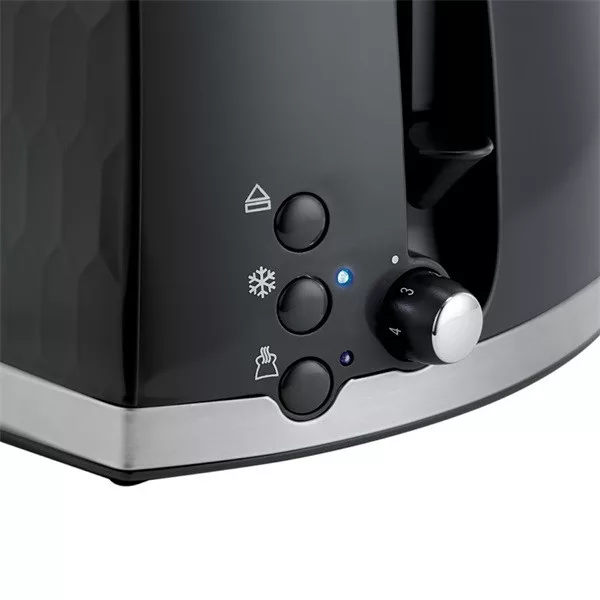 Kölcsönözzön divatos stílust konyhájának a Honeycomb 2 szeletes prémium fekete dombornyomott kivitelű kenyérpirítójával. Felfrissíti konyhája megjelenését, ugyanakkor számtalan kényelmi funkcióval rendelkezik, és a pénztárcáját sem terheli meg. Extra kiemelő funkciója megkönnyíti a kezelést, a zsemlemelegítő rács pedig a reggelek kedvelt kiegészítője.