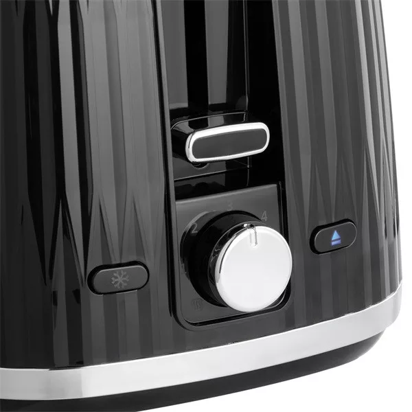 ÖsszefoglalóA Russell Hobbs Eden fekete kenyérpirító stílusos, textúrázott külseje minden konyhában lenyűgöző látványt nyújt. A 6 pirítási fokozat, valamint a kiolvasztás, újramelegítés és leállítás funkció segítségével minden alkalommal tökéletes szeletet készíthet. A praktikus kiemelő funkciónak köszönhetően pedig könnyen kiemelheti a pirítóst a forró pirítóból.