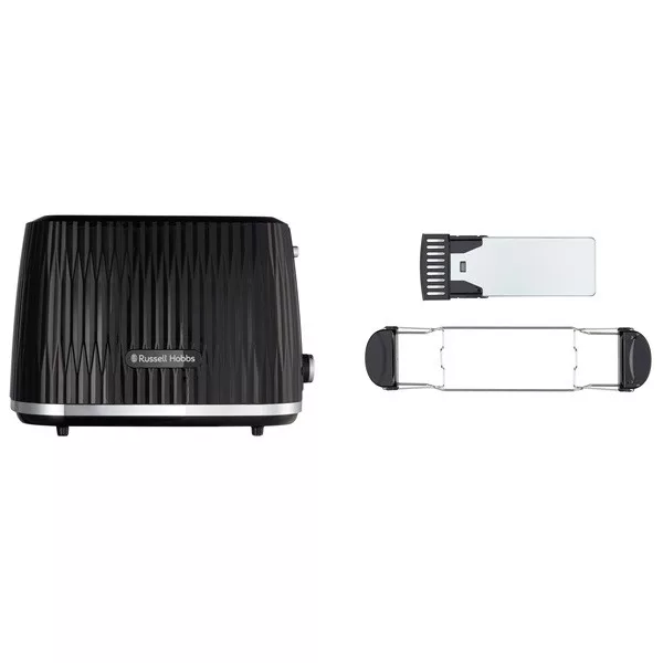 Termékjellemzők• Prémium texturált kivitel, szálcsiszolt dekorral • 2 szeletes kenyérpirító• Széles betöltőnyílás a vastagabb kenyérszeletekhez• Állítható pirítási fokozatok – 6 fokozat• Kiolvasztás, megszakítás és melegítő funkció• Megvilágítás működés közben • Kivehető morzsatálca• Zsemlemelegítő rács • Extra kiemelés – könnyen kivehető a megpirult kenyérszelet• 61 cm hosszú kábel• 850 W teljesítmény• 2+1 év garancia online regisztráció esetén (www.russellhobbs.com/register )