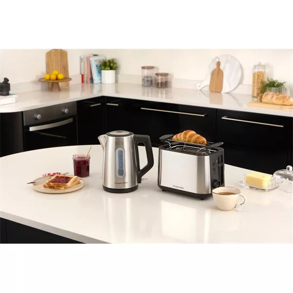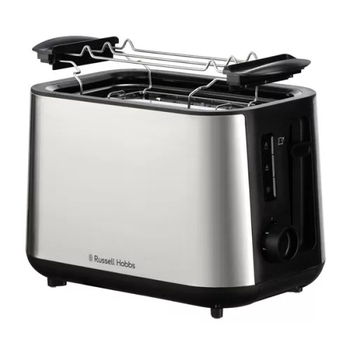 Termékjellemzők• Rozsdamentes acél kivitel • 2 szeletes kenyérpirító• Széles betöltőnyílás a vastagabb kenyérszeletekhez• Állítható pirítási fokozatok – 6 fokozat• Kiolvasztás, megszakítás és melegítő funkció• Megvilágítás működés közben • Kivehető morzsatálca• Zsemlemelegítő rács • Extra kiemelés – könnyen kivehető a megpirult kenyérszelet• 61 cm hosszú kábel• 850 W teljesítmény• 2+1 év garancia online regisztráció esetén (www.russellhobbs.com/register )