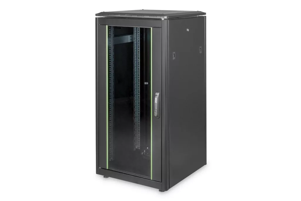 Szabadon álló, Keret kapacitása:22U, Méret:19", Magasság:1214mm, Szélesség:600mm, Mélység:600mm, Black RAL9005, Összeszerelt