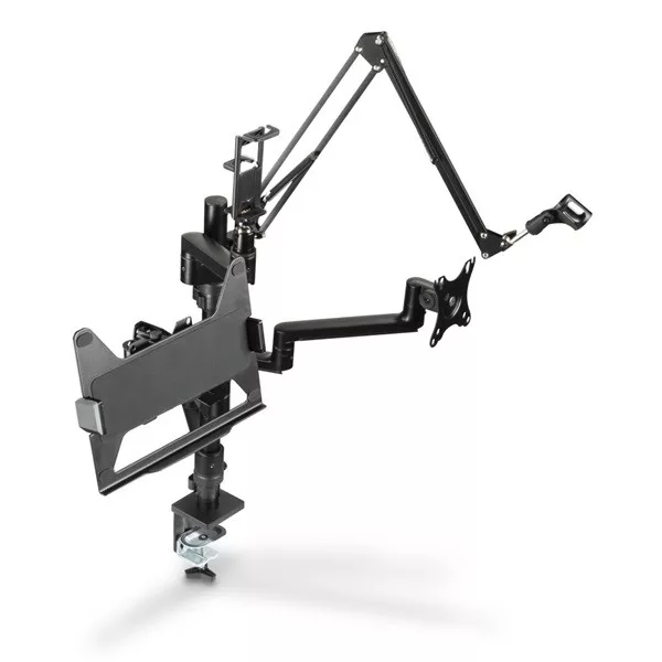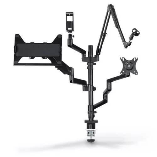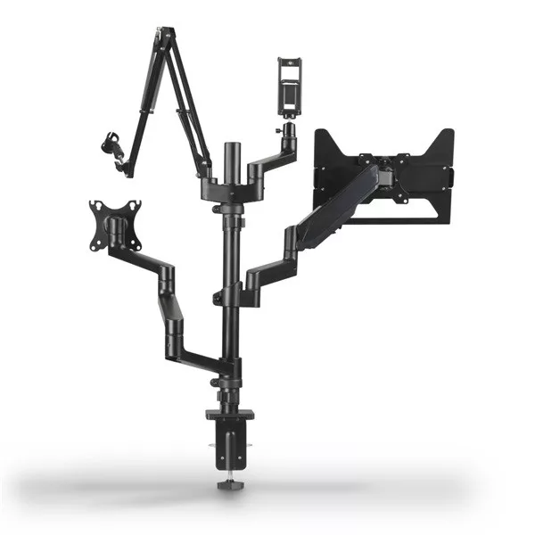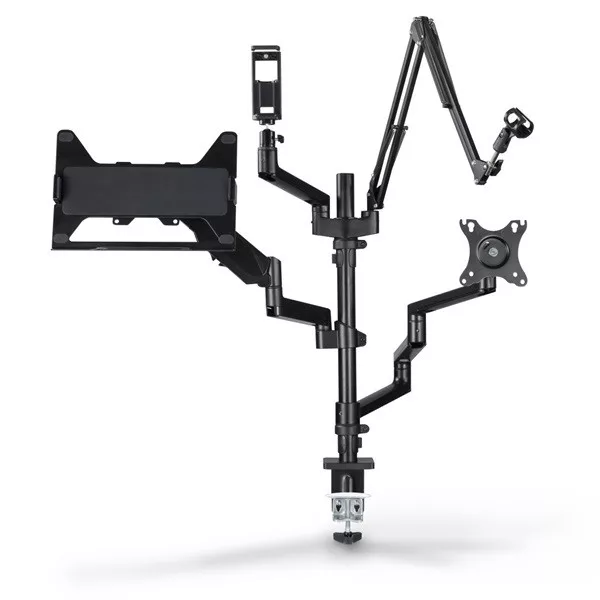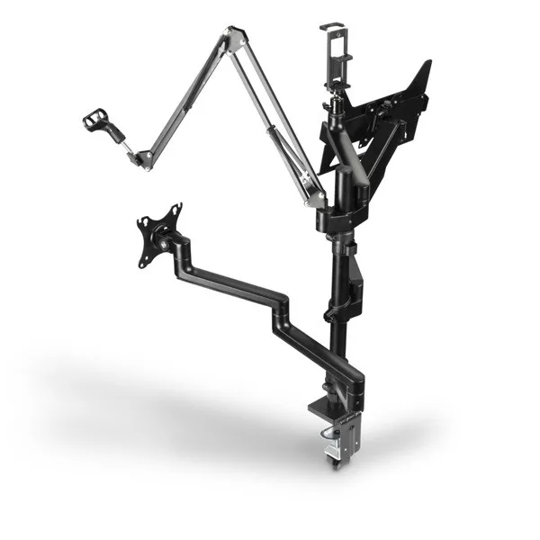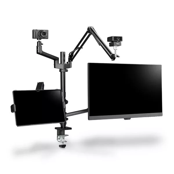 "Workstation" streaming kar a jobb ergonómiáért, kényelemért és több helyért az íróasztalon - univerzálisan használható élő közvetítéshez, játékhoz, megbeszélésekhez, felvételekhez stb. Egyedileg használható streaming állvány 4 állítható magasságú karral és a különféle mellékelt tartozékokkal. Teljes körűen mozgatható monitorkonzol - az ergonomikus munkahelyért: A streaming kar alkalmazkodik az Ön egyéni igényeihez és ülőhelyzetéhez. Így működik az ergonómia az irodában, az otthoni munkavégzés során, valamint a játékokban.