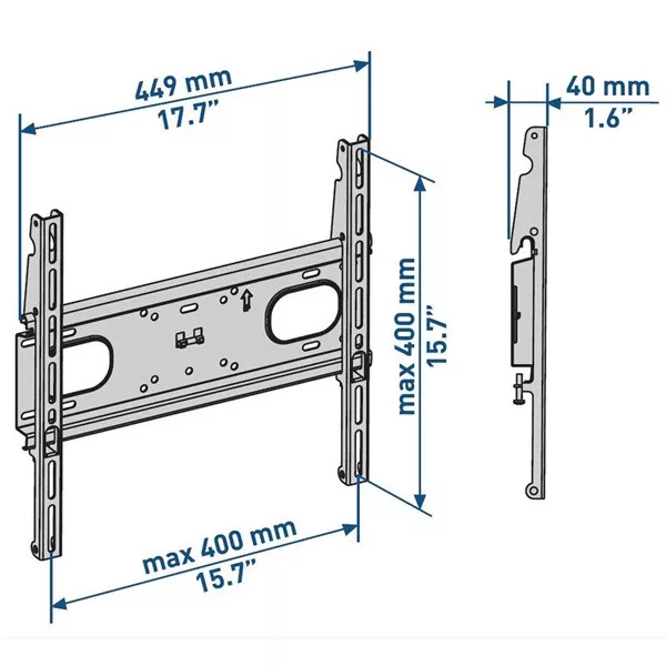 UltraStrong Fix TV-tartó 32-88"-os TV-hez• Gipszkarton falazathoz fejlesztve, speciális dübelekkel ellátva. • Normál tömör falra vagy gipszkartonra szerelhető• VESA 200/300/400 kompatibilis• Fali konzol egyetlen személy által felszerelhető• OLED TV-khez alkalmas• Ultravékony rögzítés: a fal és a TV közötti minimális távolság 4 cm• Tömör falazatra maximum terhelhetőség: 60 kg, gipszkarton falazatra 35 kg• Bárhol felszerelhető a gipszkartonra, függetlenül a függőleges csaptól• Szükséges gipszkarton vastagság: min 12,5 mm• Fischer csavarok és vízmérték mellékelve• 10 év garancia• TÜV tanúsítás• Olaszországban gyártottA MELICONI Slimstyle Plus falikonzol család tagjai alkalmasak minden LCD és LED TV ideális elhelyezéséhez. A családban megtalálhatóak fix, dönthető és dönthető-forgatható típusok. Az új EASY TILT és EASY TILT PRO funkciónak köszönhetően, még soha nem volt ilyen egyszerű beállítani készüléke döntését a megfelelő szögbe. A Slimstyle konzolok TV-hez csatlakozó felülete új gumiborítást kapott, amely segít megóvni TV készülékét.