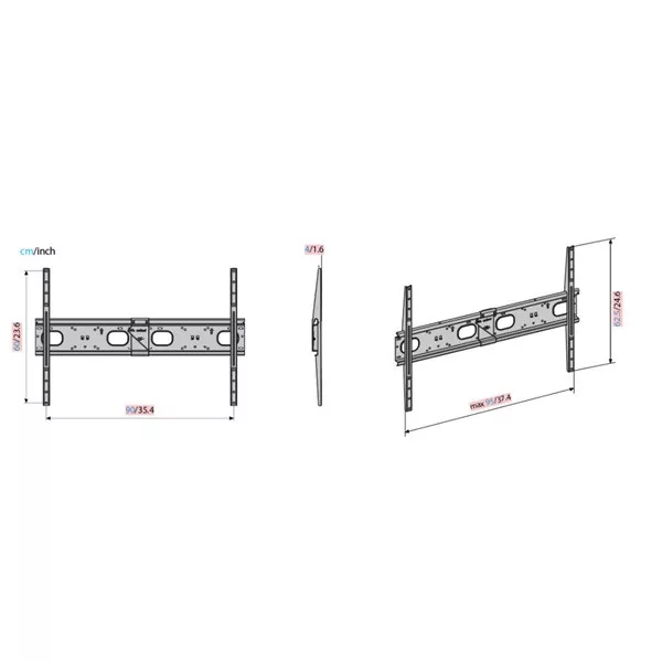 UltraStrong Fix TV-tartó 65-120"-os TV-hez• Gipszkarton falazathoz fejlesztve, speciális dübelekkel ellátva. • VESA 300/400/500/600/900 (max. 900x600) kompatibilis• Fali konzol egyetlen személy által felszerelhető• Normál tömör falra vagy gipszkartonra szerelhető• OLED TV-khez alkalmas ultrafalra szerelhető• Kiváló minőségű TV: minimális távolság a fal között 4 cm• Tömör falazatra maximum terhelhetőség: 100 kg, gipszkarton falazatra 50 kg• Bárhol felszerelhető a gipszkartonra, függetlenül a függőleges csaptól• Gipszkarton vastagság szükséges: min / 1 max2 mm• Fischer csavarok és vízmérték mellékelve• 10 év garancia• TÜV tanúsítás• Olaszországban gyártottA MELICONI Slimstyle Plus falikonzol család tagjai alkalmasak minden LCD és LED TV ideális elhelyezéséhez. A családban megtalálhatóak fix, dönthető és dönthető-forgatható típusok. Az új EASY TILT és EASY TILT PRO funkciónak köszönhetően, még soha nem volt ilyen egyszerű beállítani készüléke döntését a megfelelő szögbe. A Slimstyle konzolok TV-hez csatlakozó felülete új gumiborítást kapott, amely segít megóvni TV készülékét.