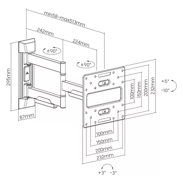Modern kialakítású teljes mozgású TV fali tartó