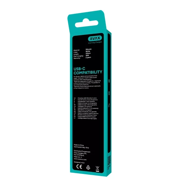 Az AVAX USB-C – Lightning gyorstöltő kábel beépített védelemmel rendelkezik, amely segít megóvni a készülék akkumulátorát a túlmelegedéstől, túltöltéstől és feszültségingadozástól. A tartós kivitel hosszú távon is megbízható működést garantál.