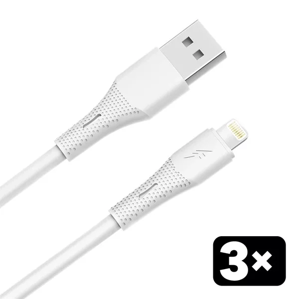 AVAX CB4306 3x USB-A – Lightning szilikon töltőkábel csomag, 1.5 m, fehér