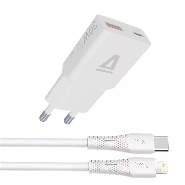 1.Teljes csomag – töltő és kábel egyben:A csomag egy 30W teljesítményű GaN gyorstöltőt és egy USB-C – Lightning szilikon kábelt tartalmaz, amely lehetővé teszi az Apple eszközök gyors töltését és adatátvitelét egyetlen praktikus megoldásban.2.30W gyorstöltés Apple készülékekhez:A 30W USB-C gyorstöltő és Lightning kábel hatékony és stabil energiaellátást biztosít kompatibilis iPhone és iPad készülékek számára, így jelentősen lerövidíti a töltési időt a hagyományos töltőkhöz képes.3.GaN technológia – nagy teljesítmény, kompakt méret:A modern GaN (Gallium Nitride) technológia lehetővé teszi a nagy teljesítményt kisebb méret mellett. A töltő hatékonyabb működést, kevesebb hőtermelést és hosszabb élettartamot biztosít.4.USB-C – Lightning szilikon kábel:A szilikon Lightning kábel rugalmas, kellemes tapintású és ellenáll a megtörésnek. Alkalmas gyorstöltésre és adatátvitelre, így tökéletes kiegészítője az Apple készülékeknek.5.Kompakt és hordozható kialakítás:A töltő nano méretű, a kábel pedig kényelmes hosszúságú, így a csomag könnyen elfér táskában vagy hátizsákban. Ideális utazáshoz és mindennapi használathoz.6.Modern dizájn és megbízhatóság:A beépített védelemmel ellátott kialakítás segít megóvni a csatlakoztatott eszközöket a túlmelegedéstől, túltöltéstől és feszültségingadozástól, így biztonságos töltést biztosít hosszú távon is.