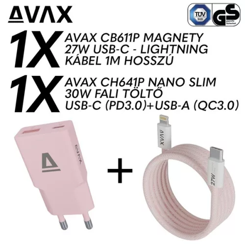 AVAX CH641P & CB611P – 30W GaN Gyorstöltő & 27W Mágneses Lightning Kábel csomag
