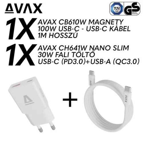 AVAX CH641W & CB610W – 30W GaN Gyorstöltő & 100W Mágneses USB-C Kábel csomag