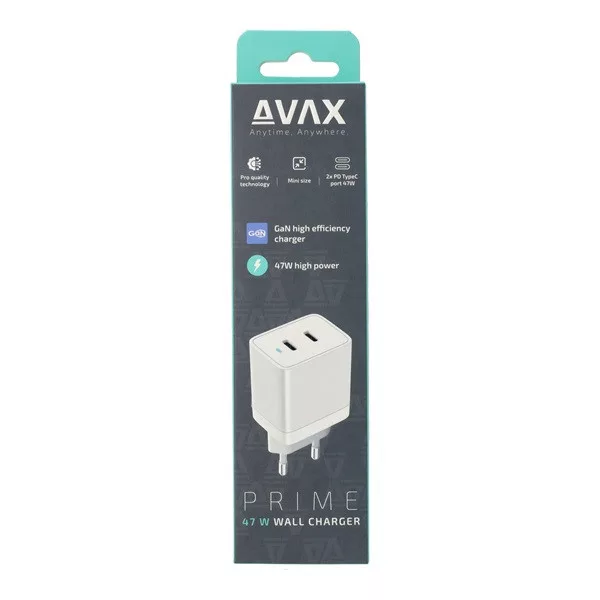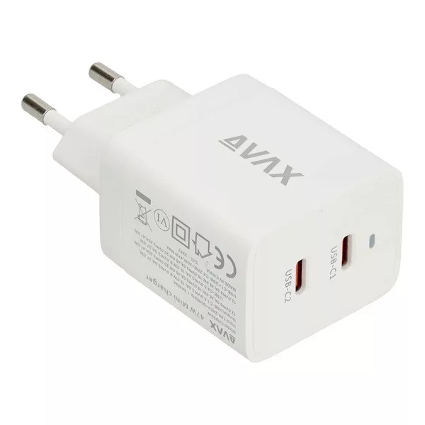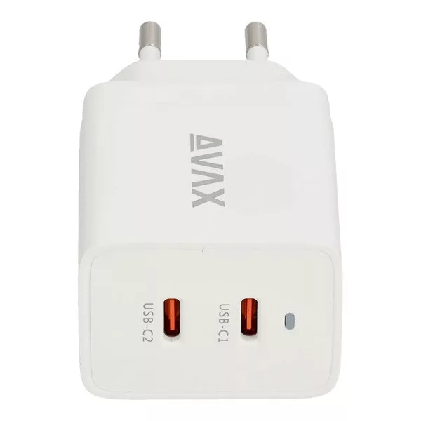 AVAX CH900W PRIME 47W GaN gyors hálózati töltő 2x Type C (PD), fehér