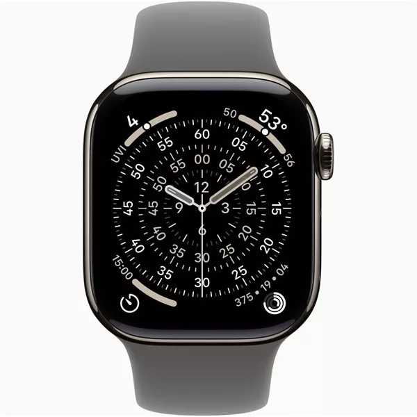 Apple Watch S11 Cellular (42mm) natúr titánium tok, kőszürke S/M sportszíjas okosóra
