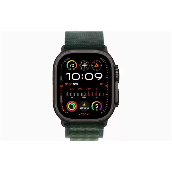 Apple Watch Ultra2 v2 Cellular (49mm) fekete titán tok, sötétzöld alpesi pánt (M) okosóra