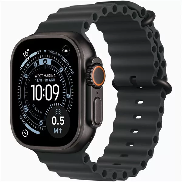 Apple Watch Ultra 3 Cellular (49mm) fekete titánium tok, fekete óceán szíjas okosóra