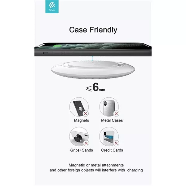 Lenyűgöző töltési lehetőségekA My Devia Allen sorozatú ultravékony vezeték nélküli töltő erőteljes töltési képességekkel büszkélkedhet, hogy megfeleljen a felhasználók igényeinek. Az 5V 2A és 9V 1.67A bemenettel, valamint az 5V 1A és 9V 1.1A kimenettel ez a vezeték nélküli töltő sokoldalú töltési lehetőségeket kínál különféle eszközökhöz.