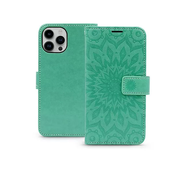 Haffner PT-6785 Apple iPhone 15 mandala zöld Mezzo Book Flip bőrtok
