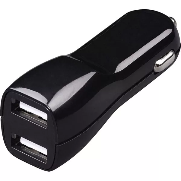 Univerzális autós töltő tábla PC-hez, MP3 lejátszóhoz, okostelefonhoz és más USB csatlakozású készülékhez, kompakt kivitel. USB kimenet : 2x 5V/2100 mA.